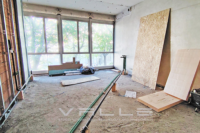 Elegant and modern 44 sqm loft currently undergoing complete renovation to achieve energy efficiency class A1, featuring panoramic windows and available garage.