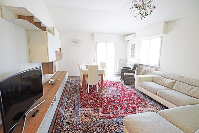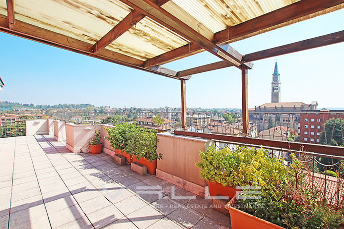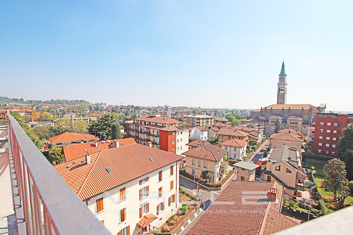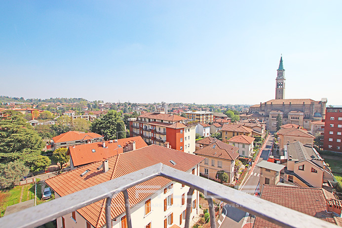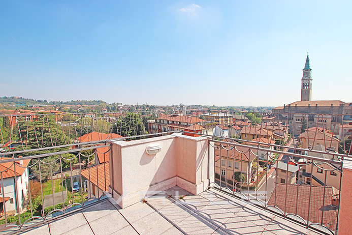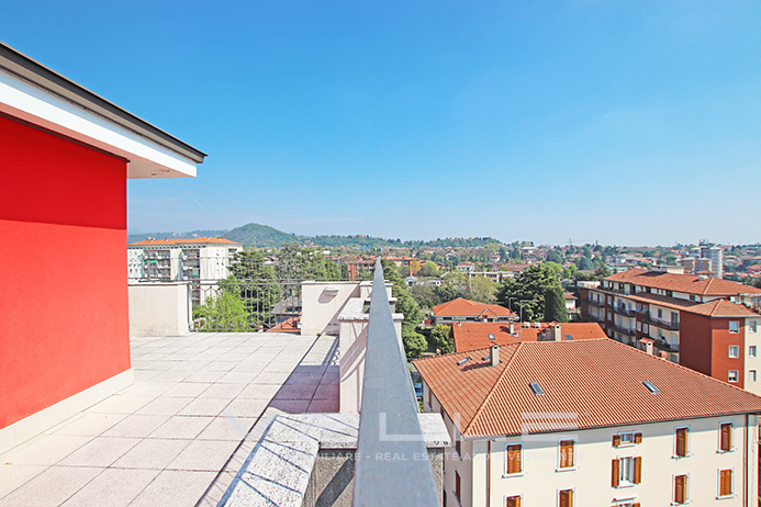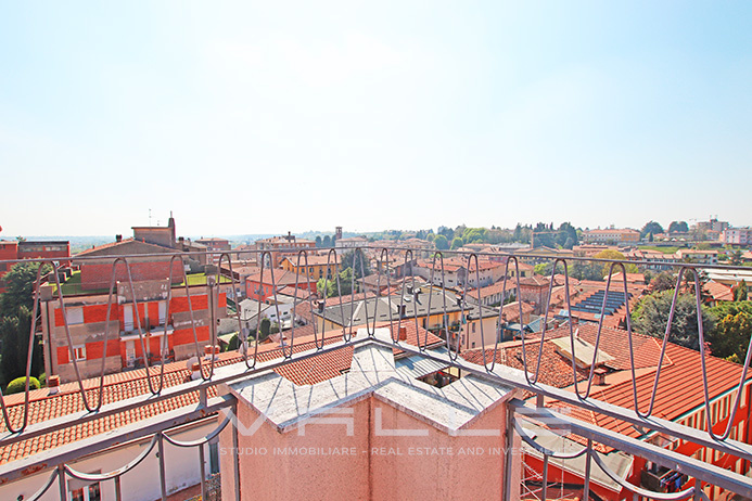 The property is located on the sixth and top floor of a building constructed in 1968, equipped with an elevator (to the fifth floor) and elegant common areas, it is located in the heart of the town center, within walking distance of all amenities, just minutes from Bergamo city center and convenient for the highway and motorway, it enjoys a particularly attractive and panoramic location with commanding 360° views and triple exposure to the sun.
