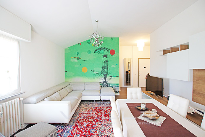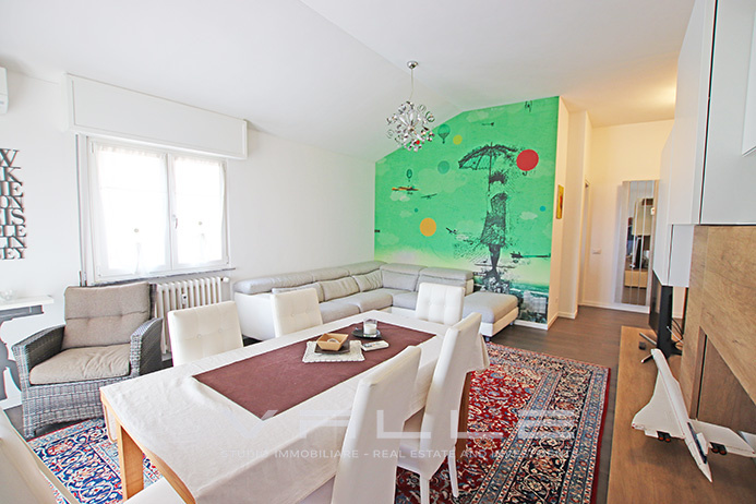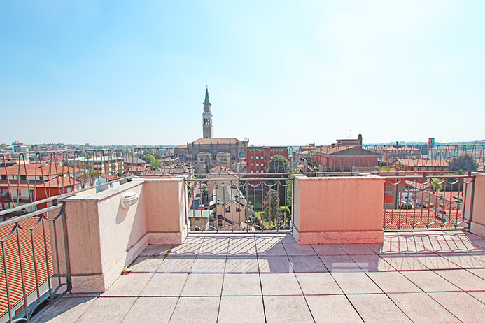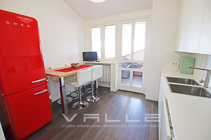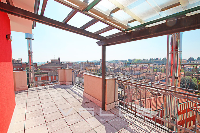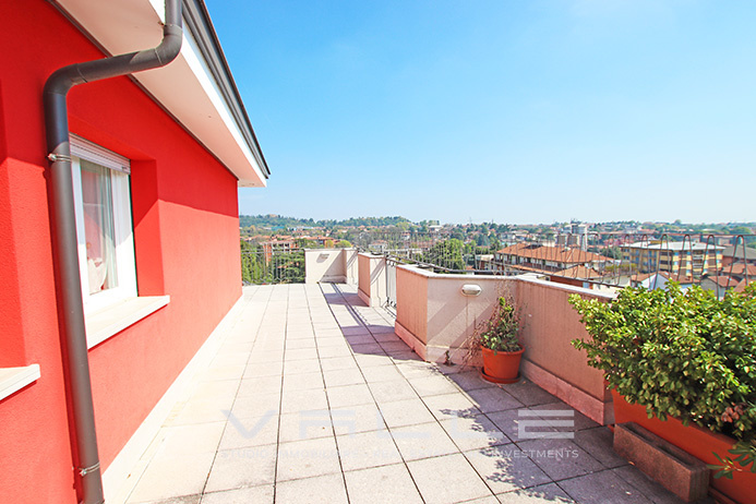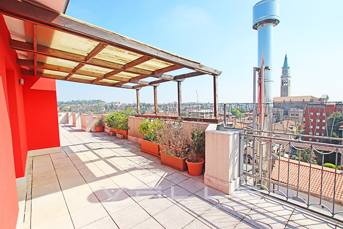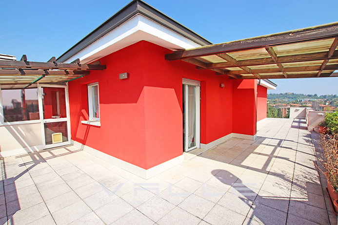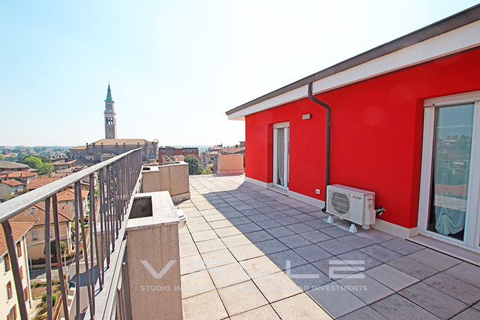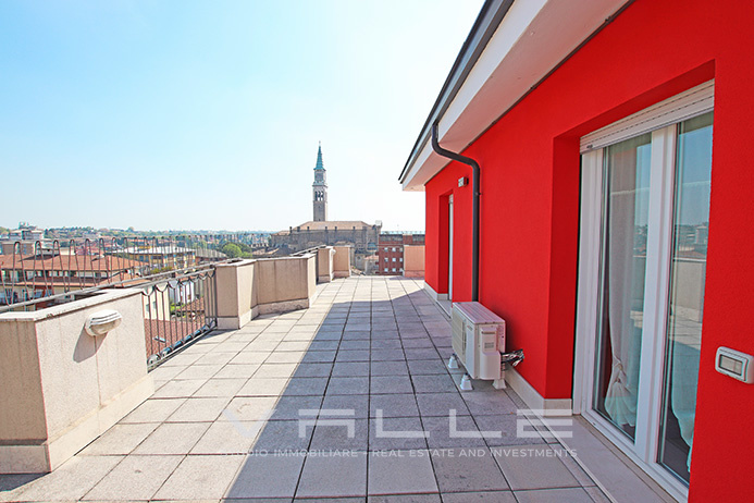 Modern 107 sqm panoramic penthouse equipped with 125 sqm terrace, cellar and an assigned car parking space for exclusive use in the shared courtyard.