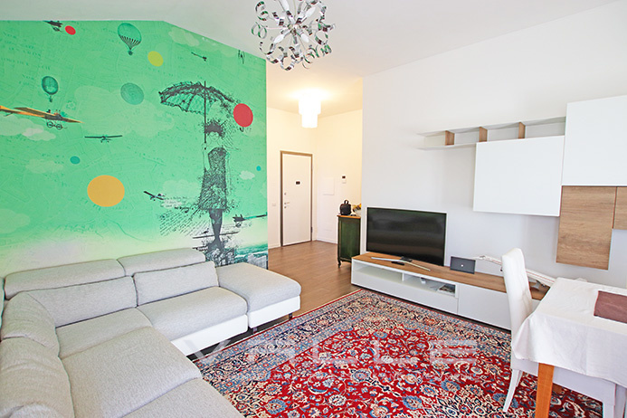 The property is sold complete with quality, designer furnishings, including a fully equipped kitchen with appliances and an induction hob (excluding the refrigerator), living room with sofas, TV console and dining area, custom-built closet, bedrooms with custom-made beds, wardrobes and desks, and a complete bathroom.