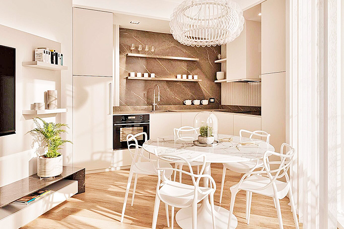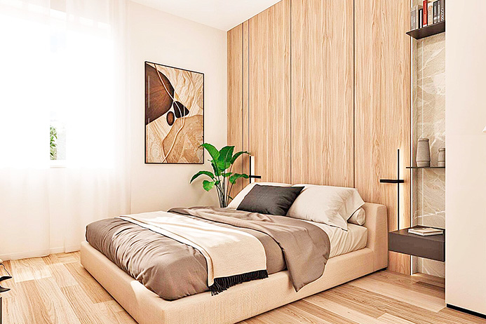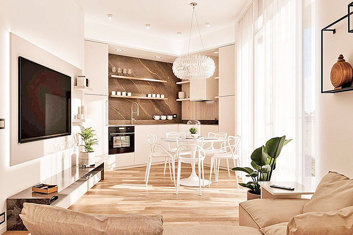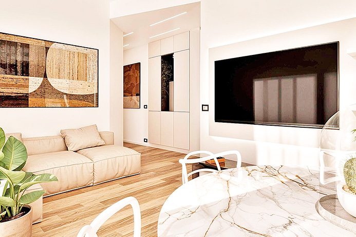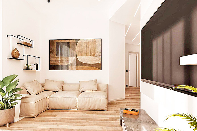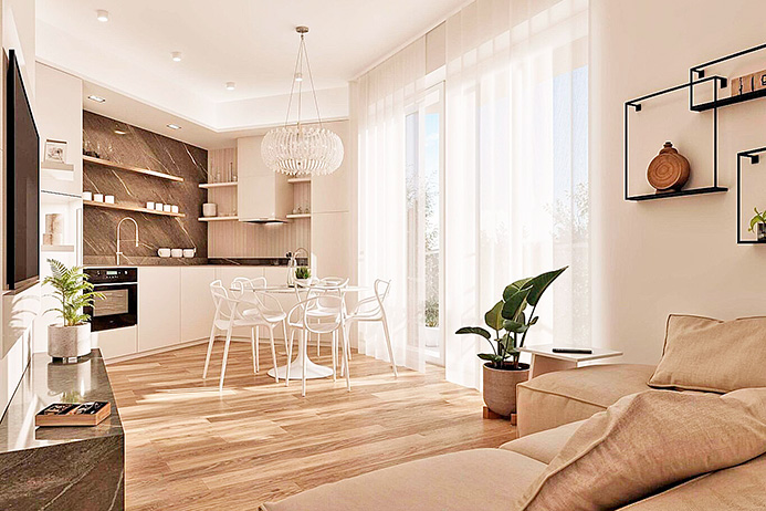 Internamente l’appartamento sarà composto da ampio ingresso con zona lavanderia, ampio soggiorno con cucina open space ed accesso al terrazzo, camera padronale ampia, seconda camera singola e bagno finestrato.