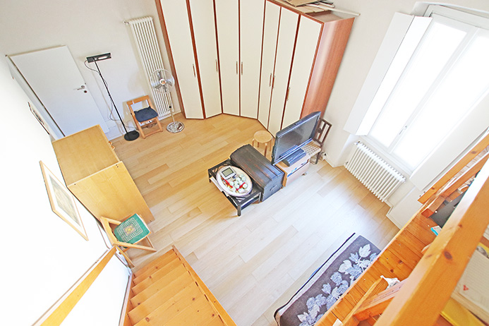 La proprietà è internamente composta da ampio ingresso, ampio bagno finestrato con splendida vista panoramica, ampio soggiorno con soppalco e zona cucina ed accesso al balcone panoramico con vista aperta delle montagne e di tutto il lato nord di città alta, camera da letto di importanti dimensioni e di alte volumetrie inserita nella torre originale dotata di balcone con vista sulla piazza e sul Duomo, ulteriore grande camera da letto con zona armadio, soppalco e 2 ripostigli.