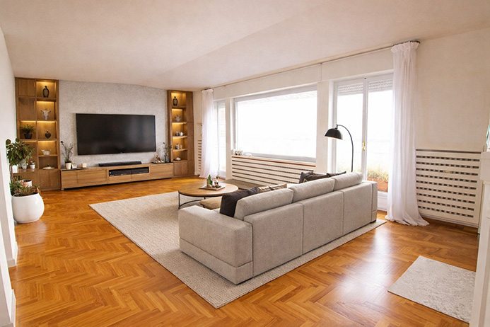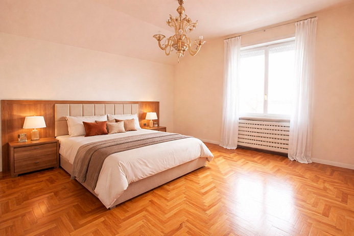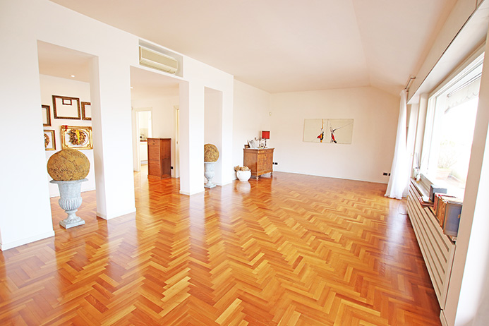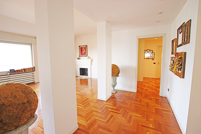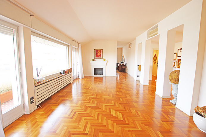 L’immobile è stato totalmente ristrutturato nel 2002 dotato di pavimentazioni in parquet, aria condizionata, riscaldamento contabilizzato, camino, moderni bagni in mosaico, vi sono invece da sostituire gli infissi con un preventivo disponibile di € 23.000,00 per il lavoro totale, vi è in itinere, da parte del condominio, il rifacimento di tutte le terrazze (comprese quelle dell’immobile in oggetto) gia deliberate a spese degli attuali proprietari.