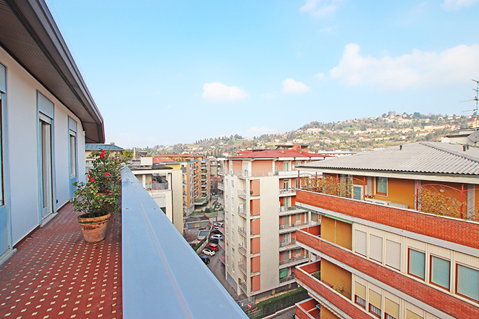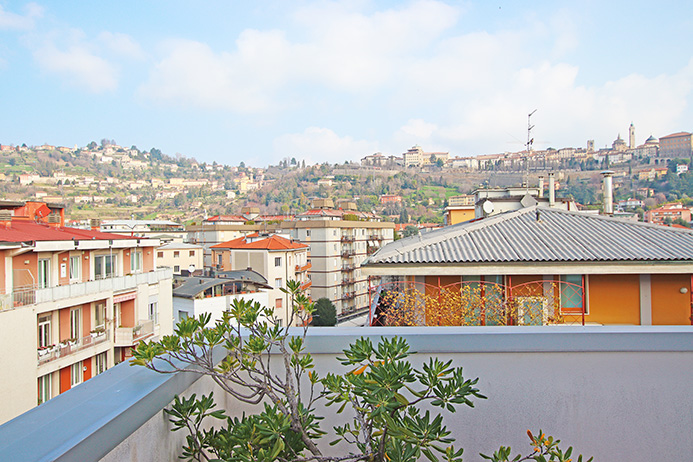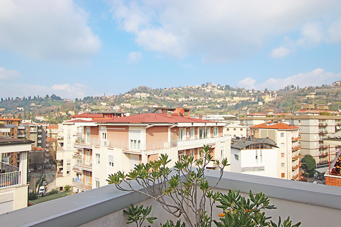 Prestigioso attico panoramico vista città alta di mq 170 dislocato su unico livello dotato di 100 mq di terrazze, cantina e ampia autorimessa.