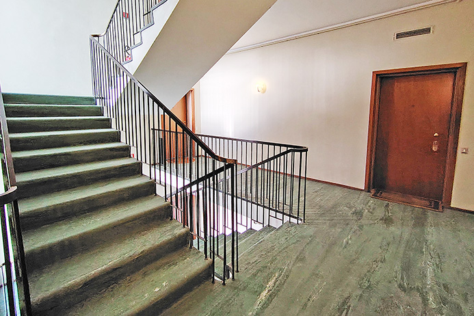 Элегантные панорамные апартаменты площадью 100 кв.м., в настоящее время требующие ремонта, с двумя балконами с панорамным видом и подвалом.