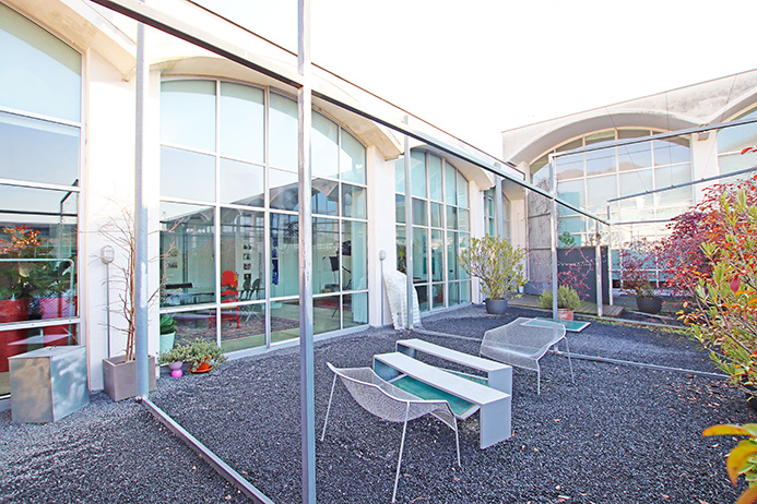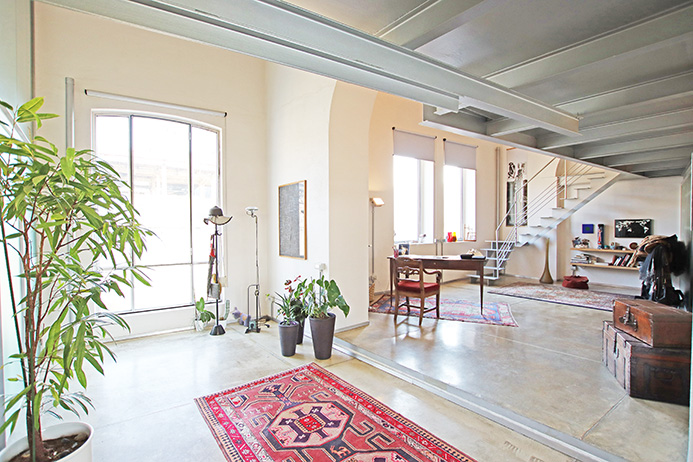 这间现代工厂风格阁楼建筑面积达 200 平方米,共两层,拥有 65 平方米的露台(含屋顶花园)、大型酒窖和室内停车位,极具建筑价值。