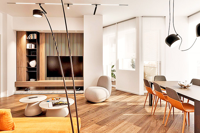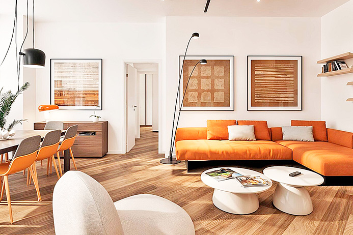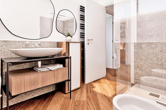 这套105平方米的豪华两居室公寓目前正在进行全面翻新,目标是达到A1级能效标准。公寓配备两个阳台和一个车库。