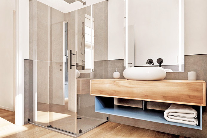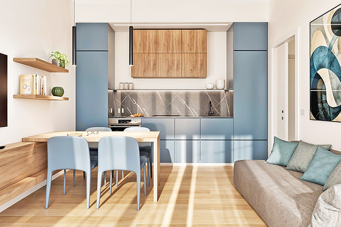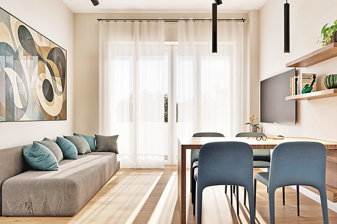 优雅的 55 平方米一居室公寓目前正在进行全面能源改造,以达到 A1 级效率,配有阳台和车库。